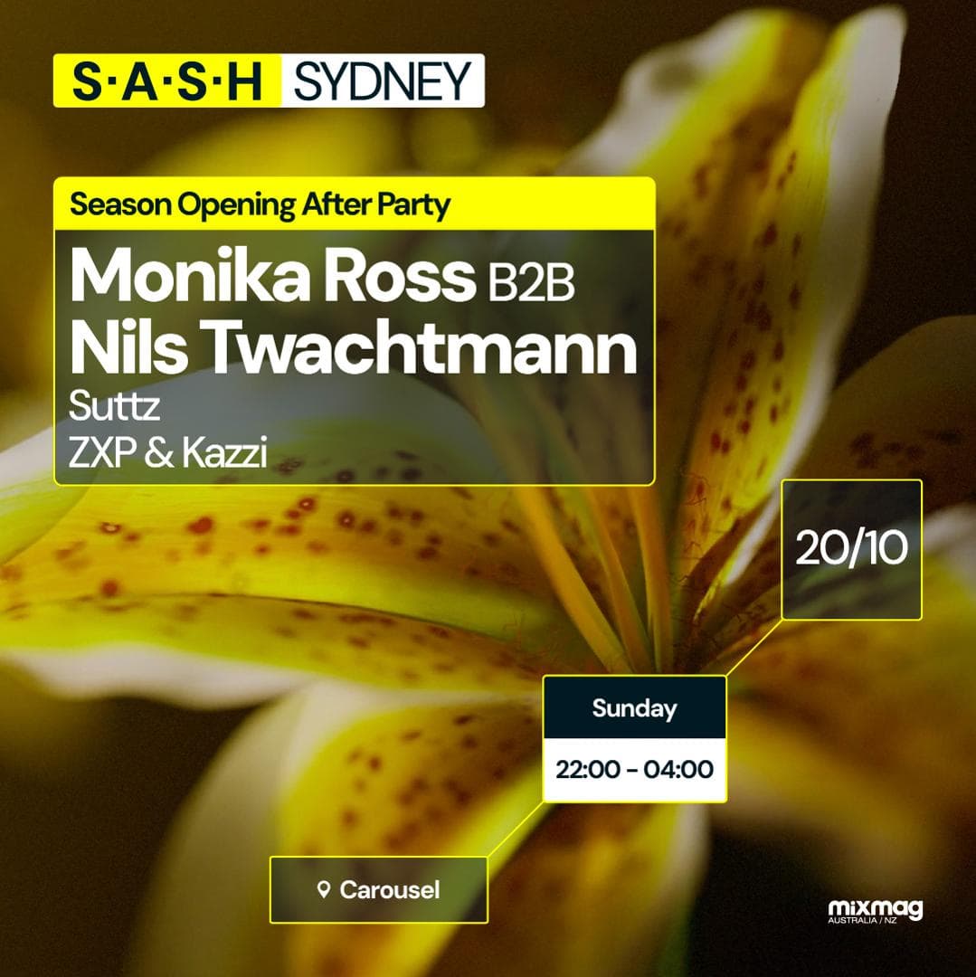★ S.A.S.H Sydney ★ Season Opening After Party ★ Monika Ross B2B Nils Twachtmann ★ Sunday October 20th ★