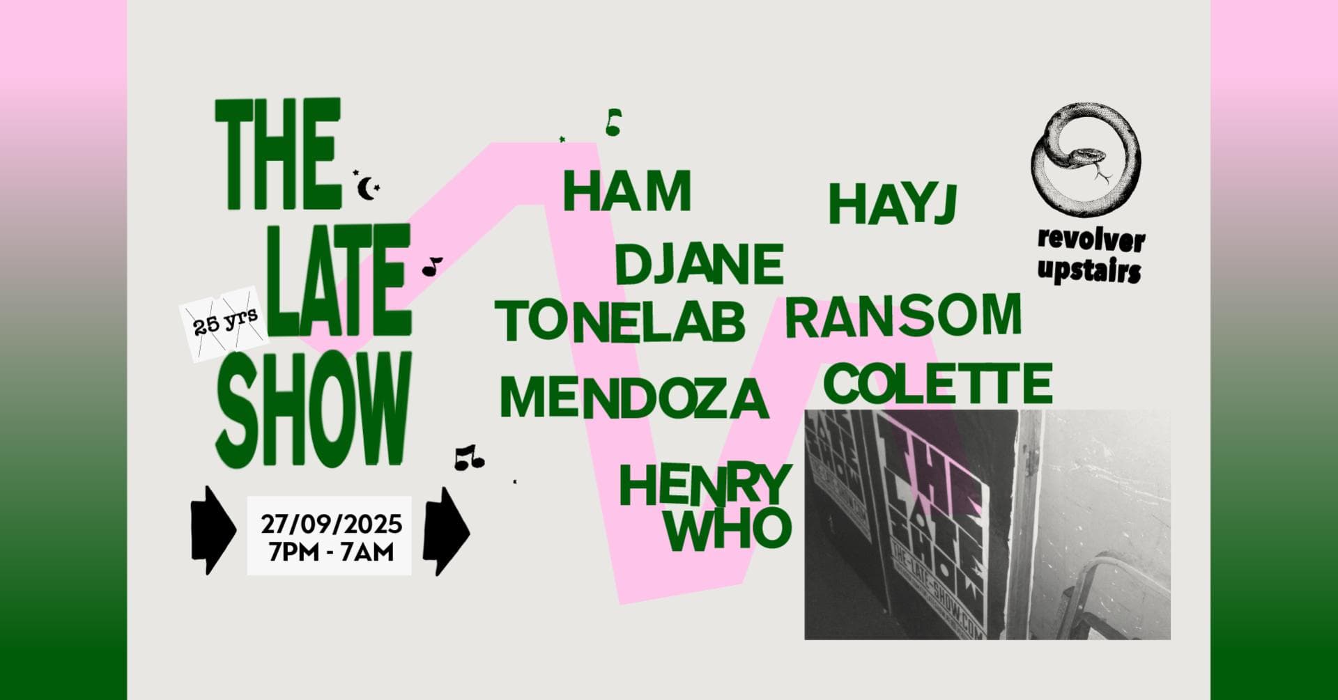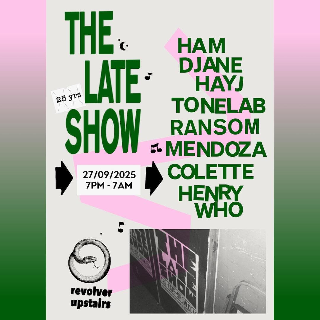 The Late Show is Revolver’s weekly Saturday night. Spread over two rooms, the night begins with Colonel Tan’s restaurant, then gathers pace around 10pm. In the front room, a barrage of Garage, Bassline, Techno and Qgom is shelled down; while in the back-bar, DJ’s splice together House with layers of Italo, Soca and Afro. Residents Ransom, Lewis CanCut and guests plus Boogs from 7am Sunday.