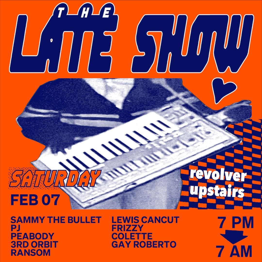 The Late Show is Revolver’s weekly Saturday night. Spread over two rooms, the night begins with Colonel Tan’s restaurant, then gathers pace around 10pm. In the front room, a barrage of Garage, Bassline, Techno and Qgom is shelled down; while in the back-bar, DJ’s splice together House with layers of Italo, Soca and Afro. Residents Ransom, Lewis CanCut and guests plus Boogs from 7am Sunday.