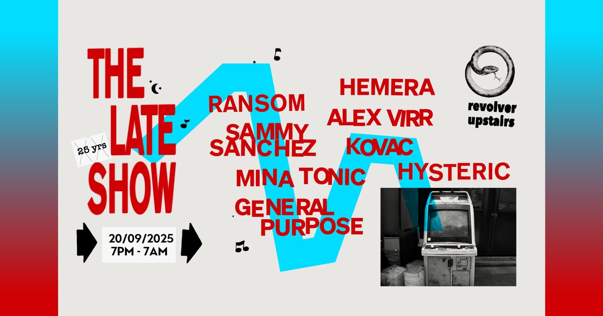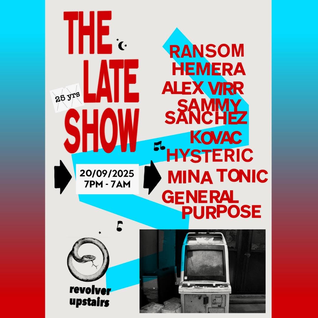 The Late Show is Revolver’s weekly Saturday night. Spread over two rooms, the night begins with Colonel Tan’s restaurant, then gathers pace around 10pm. In the front room, a barrage of Garage, Bassline, Techno and Qgom is shelled down; while in the back-bar, DJ’s splice together House with layers of Italo, Soca and Afro. Residents Ransom, Lewis CanCut and guests plus Boogs from 7am Sunday.