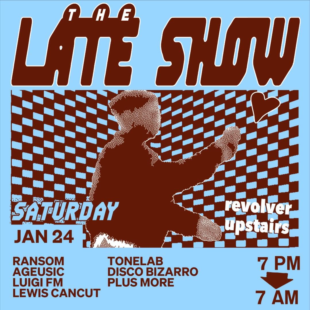 The Late Show is Revolver’s weekly Saturday night. Spread over two rooms, the night begins with Colonel Tan’s restaurant, then gathers pace around 10pm. In the front room, a barrage of Garage, Bassline, Techno and Qgom is shelled down; while in the back-bar, DJ’s splice together House with layers of Italo, Soca and Afro. Residents Ransom, Lewis CanCut and guests plus Boogs from 7am Sunday.