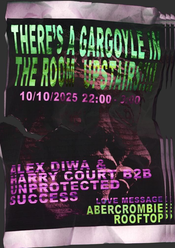 We think they’ve done it. We think they know. We think they’ve let it in. We think there’s a gargoyle upstairs on Friday the 10th of October from 10pm to 3am and it wants us to go up there!!