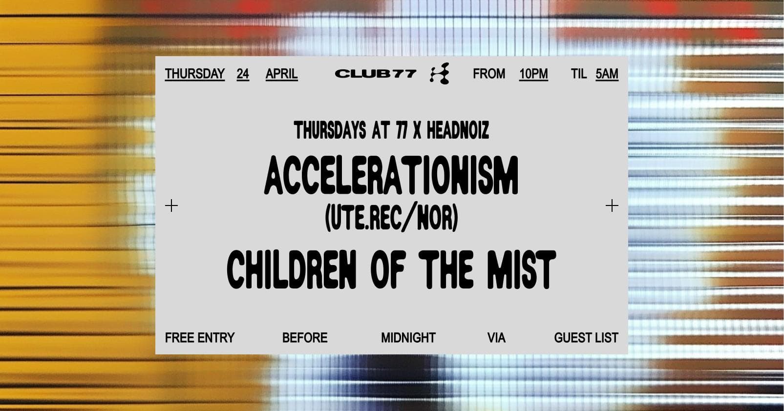 Thursdays at 77 x Headnoiz: Accelerationism (Ute.Rec/NOR), Children Of The Mist