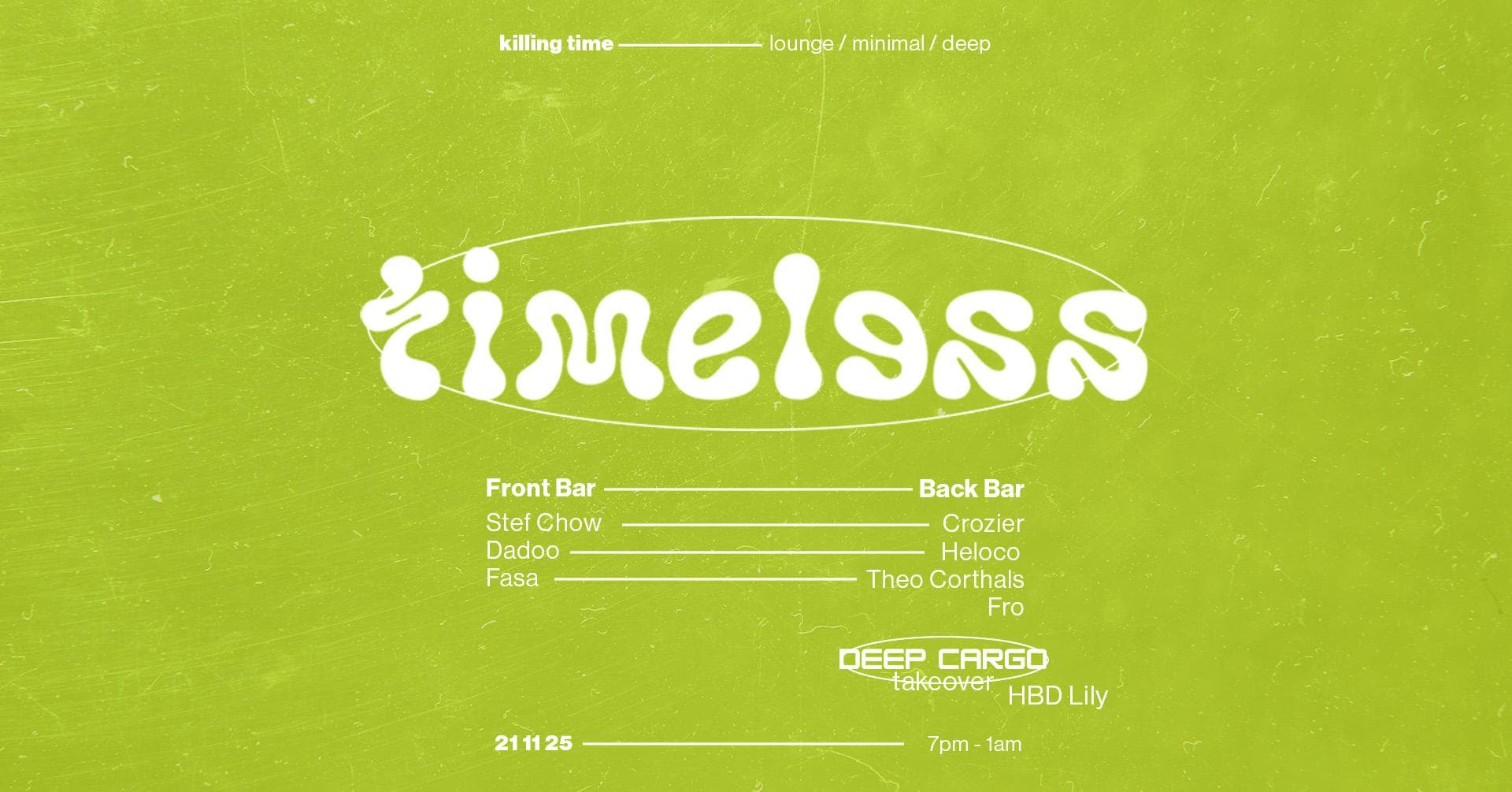 TIMELESS at KILLING TIME with DEEP CARGO