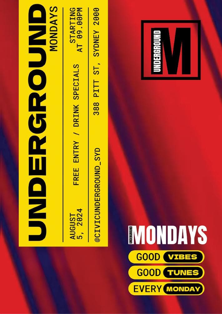 Starting on August 5 and every week, join us at Underground Mondays hosted by one of Sydney's most in demand DJ's LeTrack.