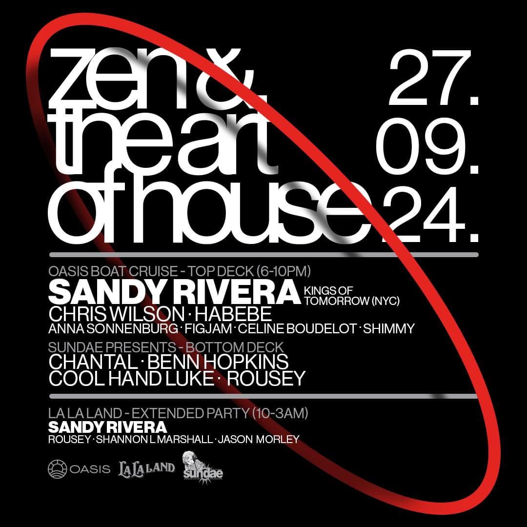In years to come, Sandy Rivera will be looked back on as one of the true greats of the scene; a pioneering artist whose passion for house music is continually realised in the music he creates. We can’t wait to hit the water with Sandy this September for Zen & the art of House ft. Sandy Rivera. Tickets are limited and sure to fly for what is going to be another sold-out show with a true legend of the scene. Two parties, one ticket. What's not to love?!